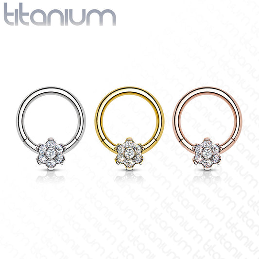 Hinged Ring Flower Gem | Titanium Clicker Segment Hoop Ring