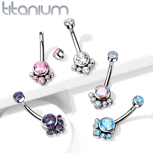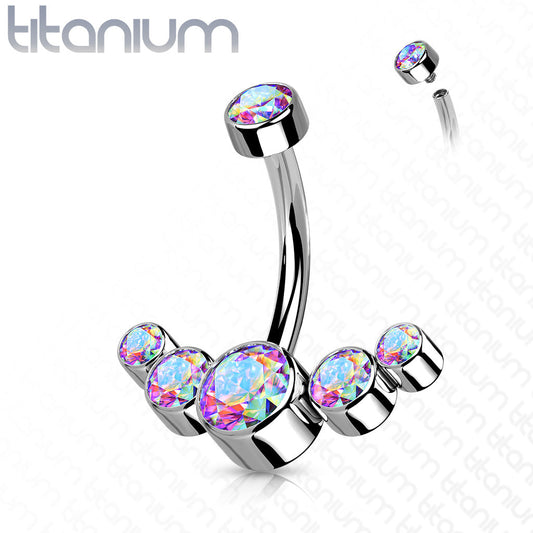 Titanium 5 Gem Curved Cluster Belly / Navel Ring